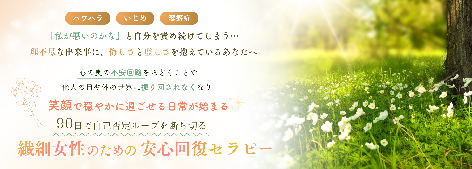 心の奥の「不安回路」をほどき、90日で自己否定ループを断ち切る『安心回復セラピー』を行っております。